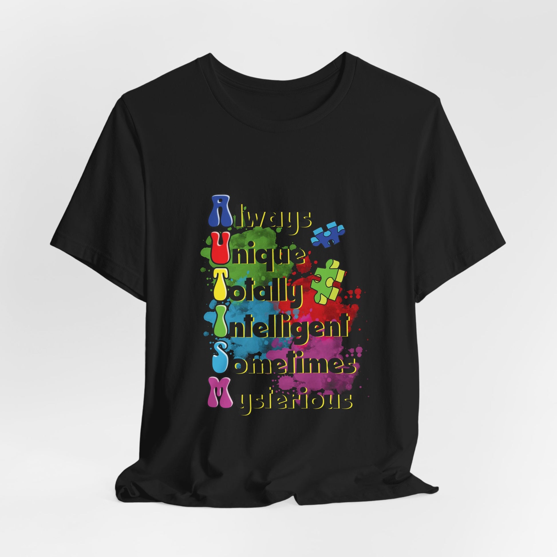 Celebrate the unique qualities of individuals on the autism spectrum with our "AUTISM" tee! 🌟 Featuring the acronym "Always Unique Totally Intelligent Sometimes Mysterious," this design honors the diverse strengths and characteristics of those with autism. Embrace the beauty of neurodiversity and spread awareness with every wear. Let this tee be a symbol of acceptance, understanding, and appreciation for the incredible individuals who make our world brighter. Wear it proudly and show support for autism acceptance and inclusion! 🧩👕 #AutismAwareness #CelebrateNeurodiversity #SpreadAcceptance