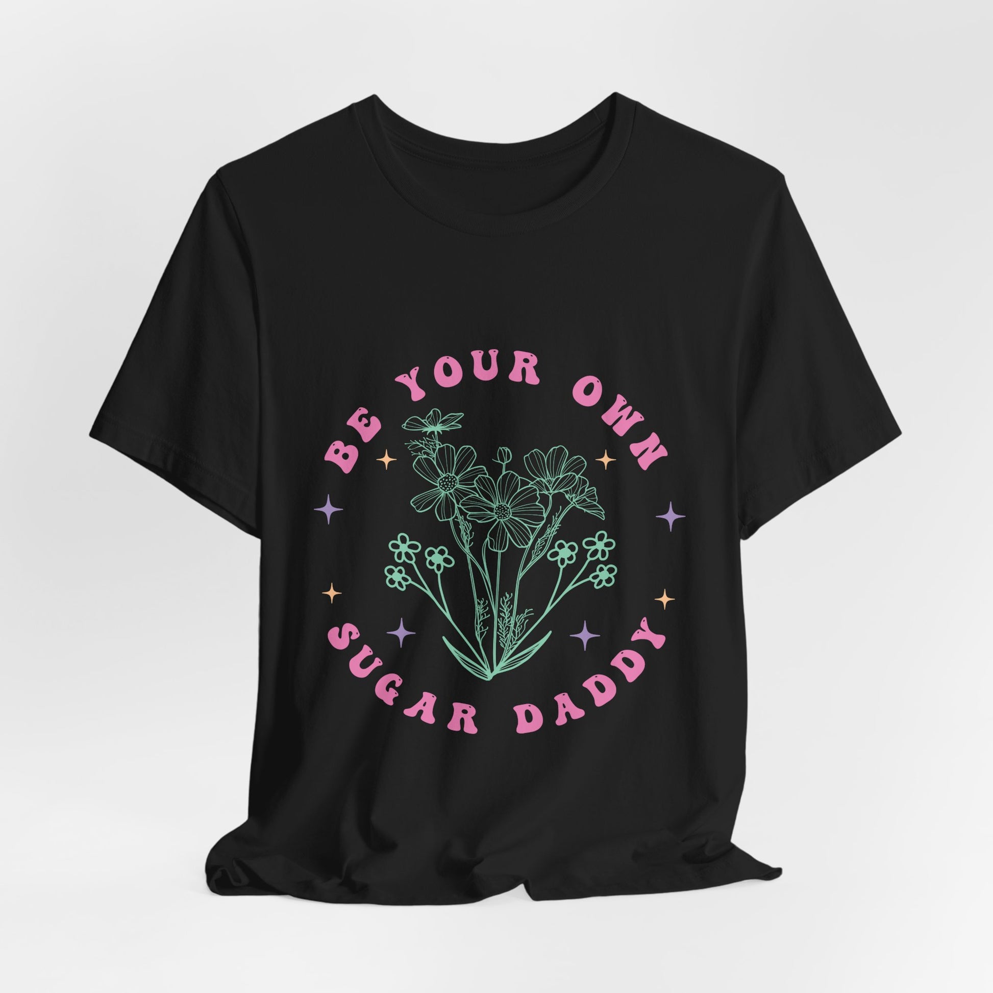 This 'Be Your Own Sugar Daddy' Tee exudes confidence and empowerment, perfect for individuals who embrace self-love and independence. It is a great addition to casual outfits or can be dressed up for a semi-formal look. Ideal for those looking to make a bold statement and stand out from the crowd. Perfect for Valentine's Day, self-love celebrations, or just as a daily reminder of self-worth.