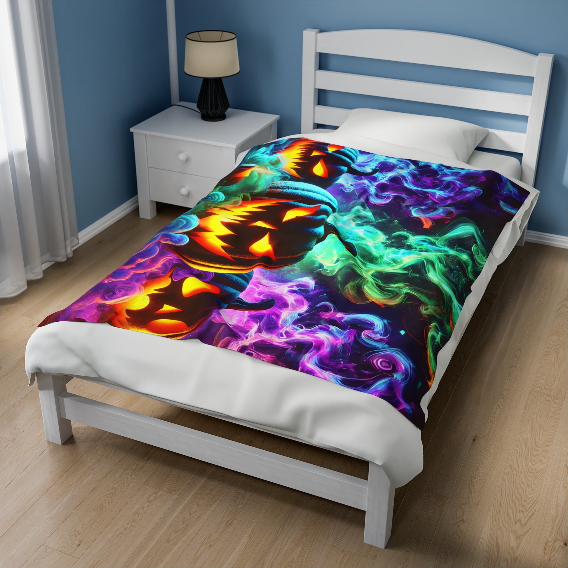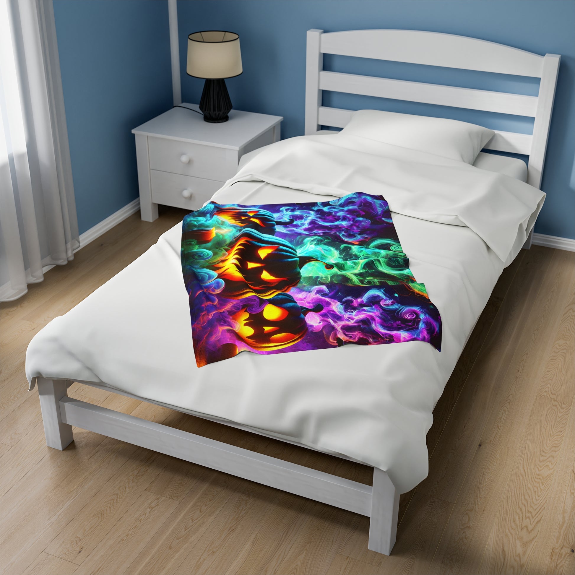Get ready to celebrate the spooky season with our enchanting **Trio of Jack O'Lanterns Blanket**! 🎃👻 This ultra-soft velveteen plush blanket is perfect for snuggling up on crisp autumn nights or adding a playful touch to your Halloween decor.