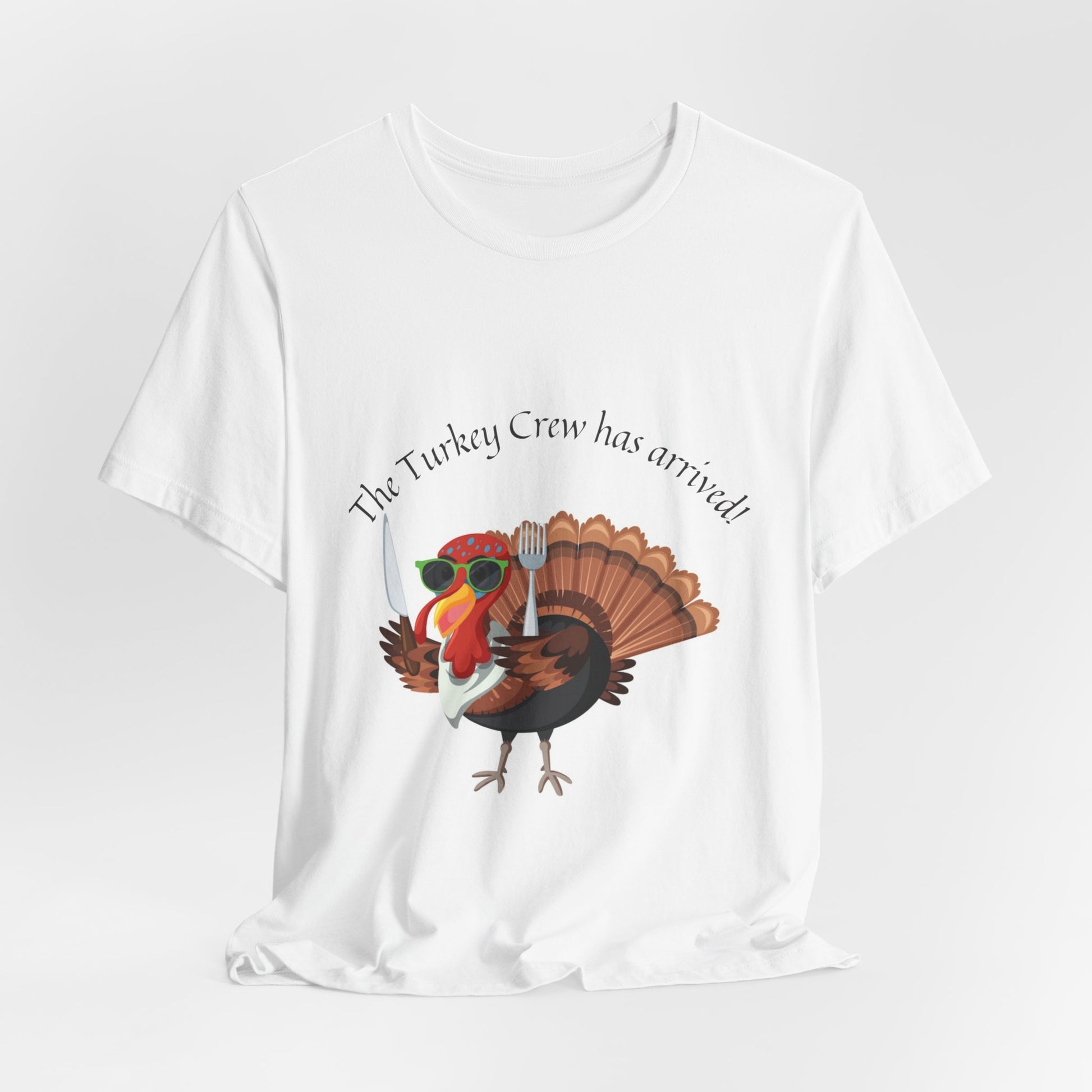 Gobble up the spirit of the season with our Turkey Crew tee. This delightful and charming design captures the essence of Thanksgiving, featuring a proud turkey ready to join the festivities. Wear it to embrace the warmth and togetherness of the holiday, or to show your love for all things turkey-related. It's the perfect choice for family gatherings, feasts, and any occasion where gratitude takes center stage. Let your style reflect the joy of Thanksgiving with our Turkey Crew tee.