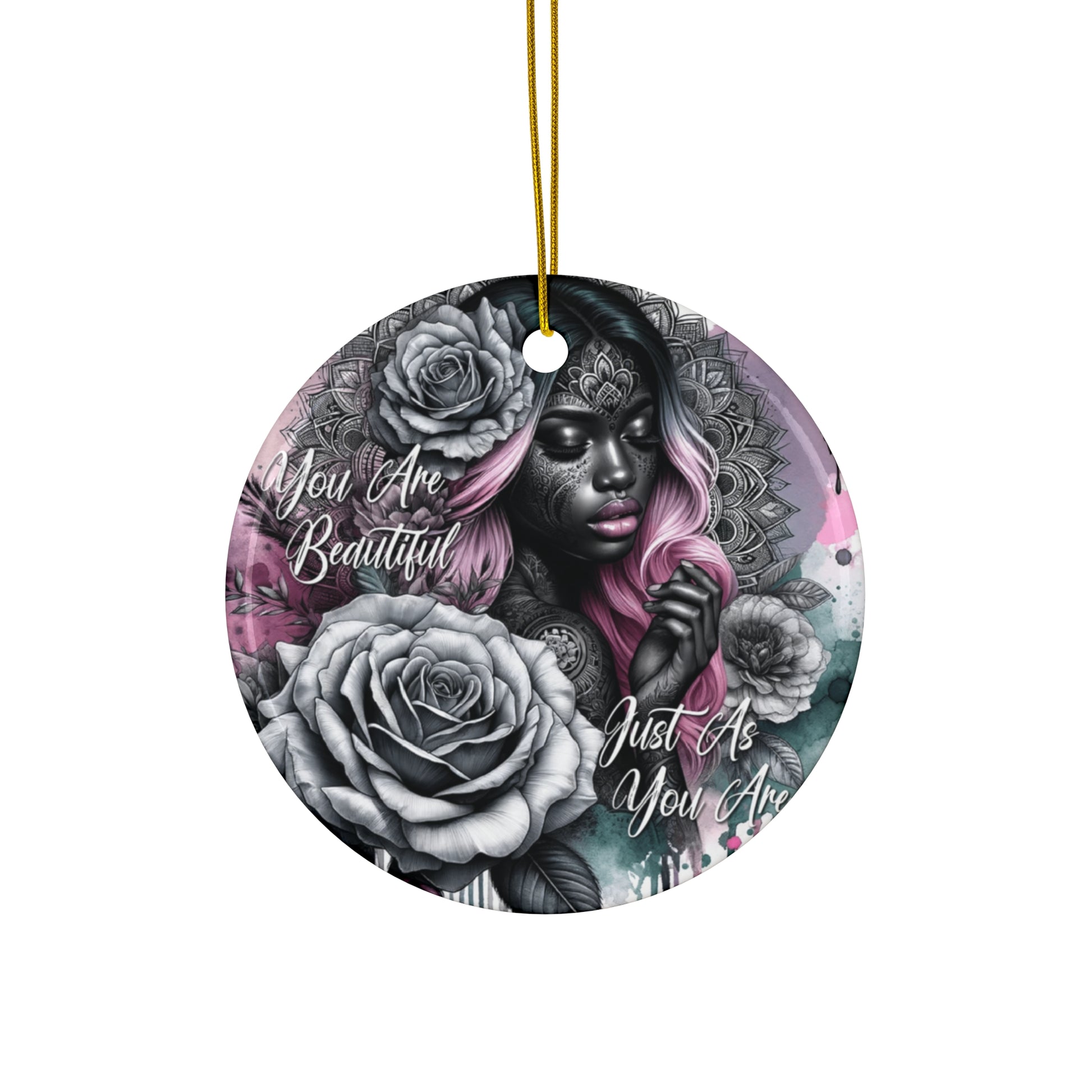 Embrace your unique beauty and inner strength with this empowering ceramic ornament. The delicate design features a graceful woman with flowing hair and a gentle smile, symbolizing self-love and acceptance. The inspiring message, "You Are Beautiful Just As You Are," serves as a daily reminder of your worth and worthiness.