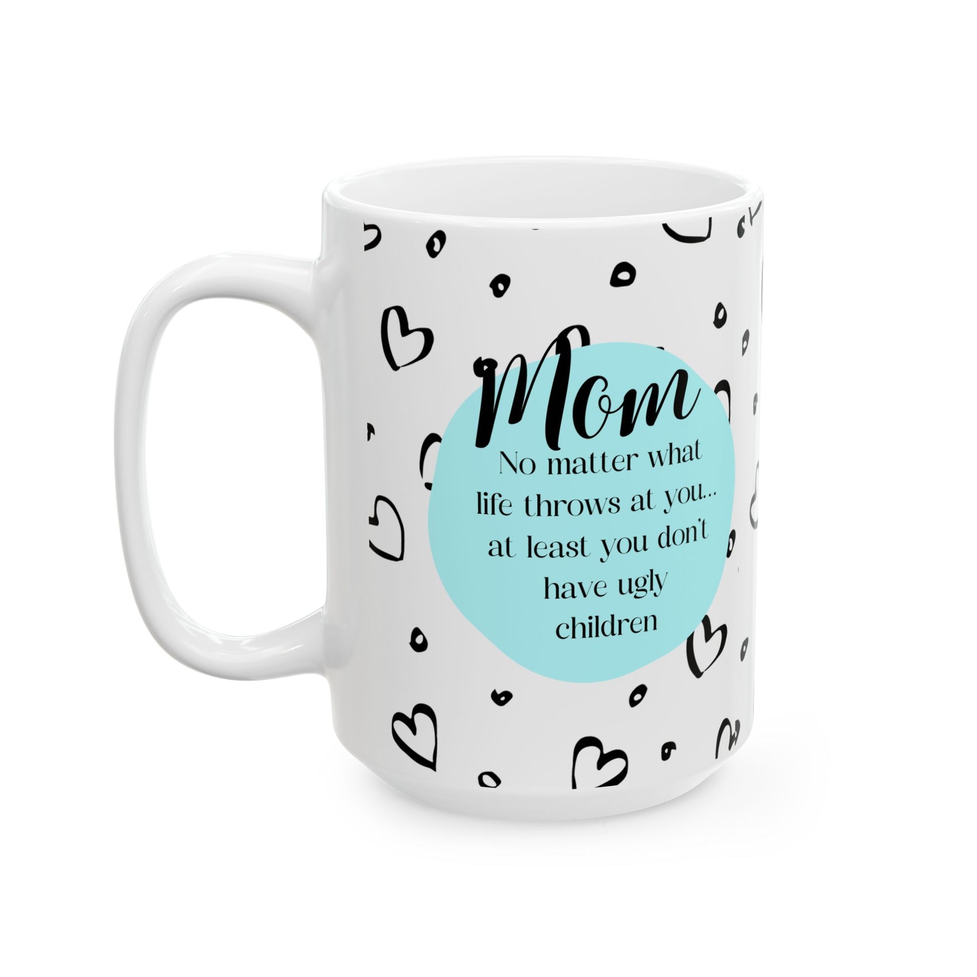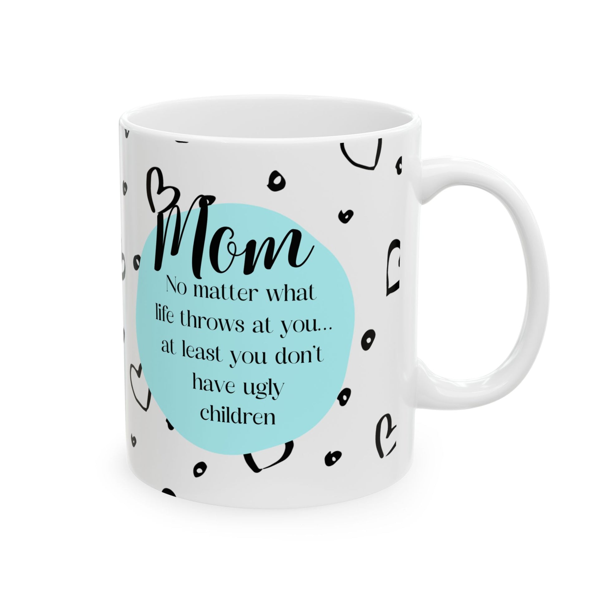 ☕💙 Start your day with a dose of humor and love with our "You Don't Have Ugly Children" (BLUE) mug! This charming white ceramic 11-ounce mug is adorned with a whimsical black and white heart design and features the heartwarming message "Mom no matter what life throws at you at least you don't have ugly children." Whether you appreciate a good laugh, want to brighten your morning coffee routine, or simply cherish the beauty of motherhood, this mug is the perfect blend of wit and warmth. Sip your favorite brew, enjoy a moment of levity, and let the love for your not-so-ugly children fill your cup to the brim! #MomHumor #LoveYouMom 💙☕