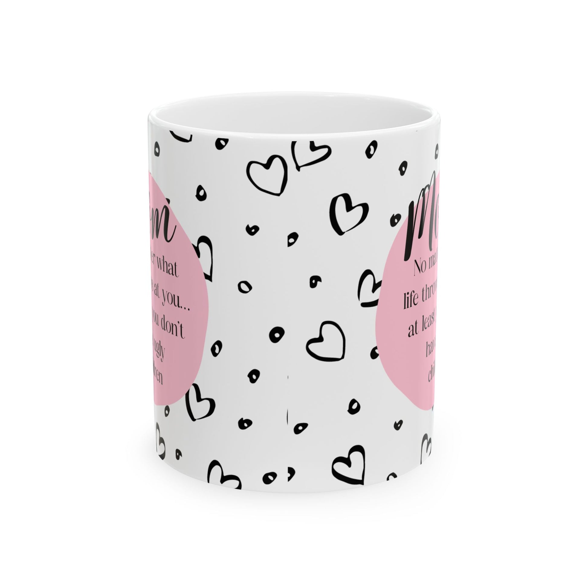 ☕💖 Start your day with a dose of humor and love with our "You Don't Have Ugly Children" (PINK) mug! This charming white ceramic 11-ounce mug is adorned with a whimsical black and white heart design and features the heartwarming message "Mom no matter what life throws at you at least you don't have ugly children." Whether you appreciate a good laugh, want to brighten your morning coffee routine, or simply cherish the beauty of motherhood, this mug is the perfect blend of wit and warmth. Sip your favorite brew, enjoy a moment of levity, and let the love for your not-so-ugly children fill your cup to the brim! #MomHumor #LoveYouMom 💖☕